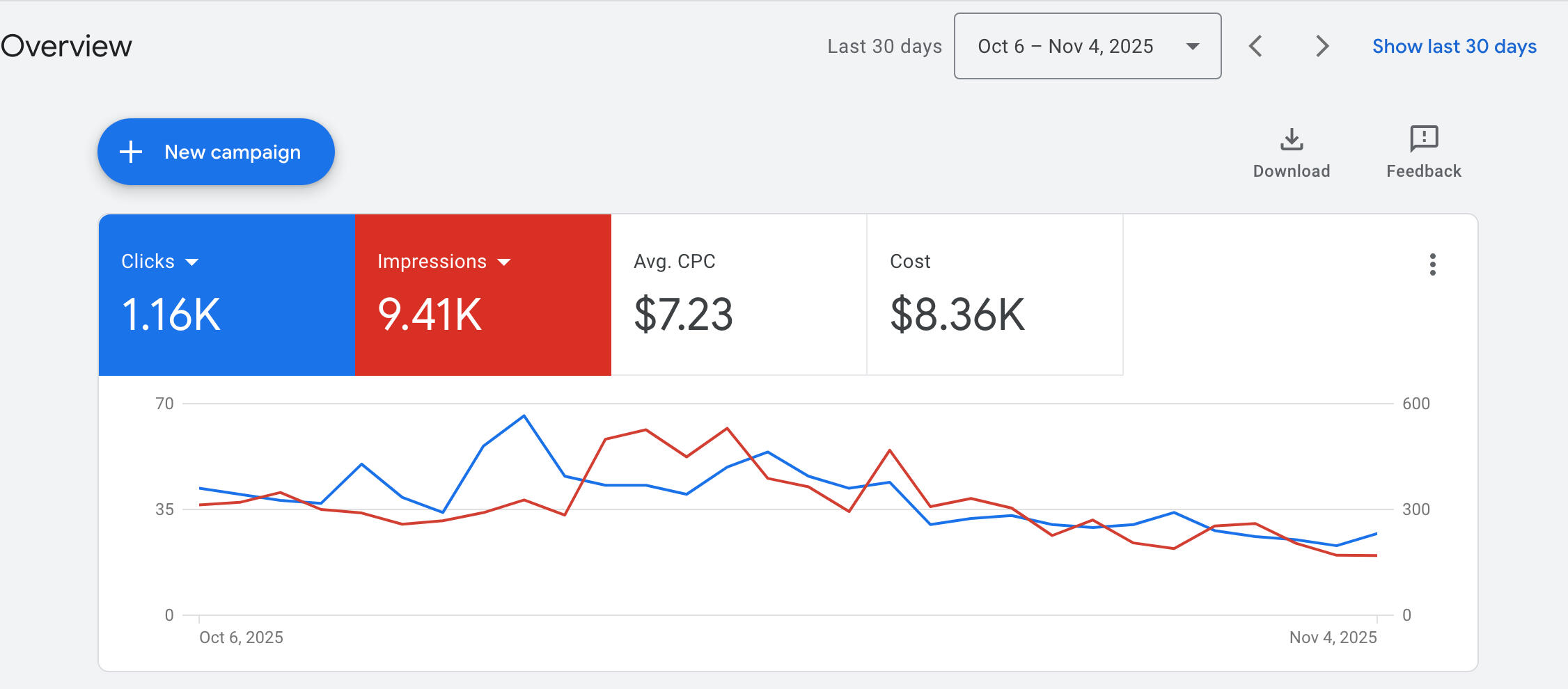 If your Google Ads Grant is stuck at $400 or $800 a month and you can't get the needle to move on donations or volunteer sign ups - Book a call with us TODAY.The screenshot below is from November 2025. This large scale community event 501c3 signed up for the Google ads grant in 2010 and could NEVER get the ad spend to go over $800 a month until we took over....This is 31 days later....
